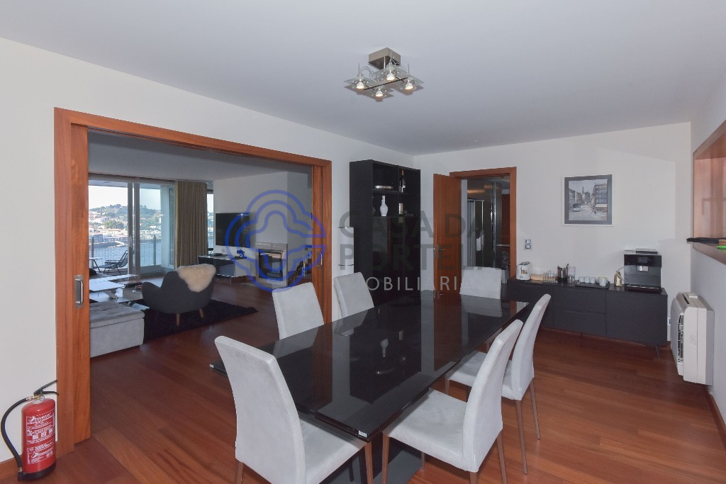 这间位于波尔图6楼的5卧室豪华公寓以其壮观的180º引人注目,并享有其前方杜罗河的美景,左侧的Arrabida桥和右侧的大西洋。宽敞的空调内饰采用高品质材料/配件制成,按照规划合理布置,两间大厅和四间卧室的阳台朝前(河景)。即使位于独特的位置,也可轻松到达约一公里的便利设施和服务,波尔图市中心为3.8公里,机场为14公里,而最近的码头就在河对岸。波尔图风景如画的电车在建筑物前经过,增添了当地特色。